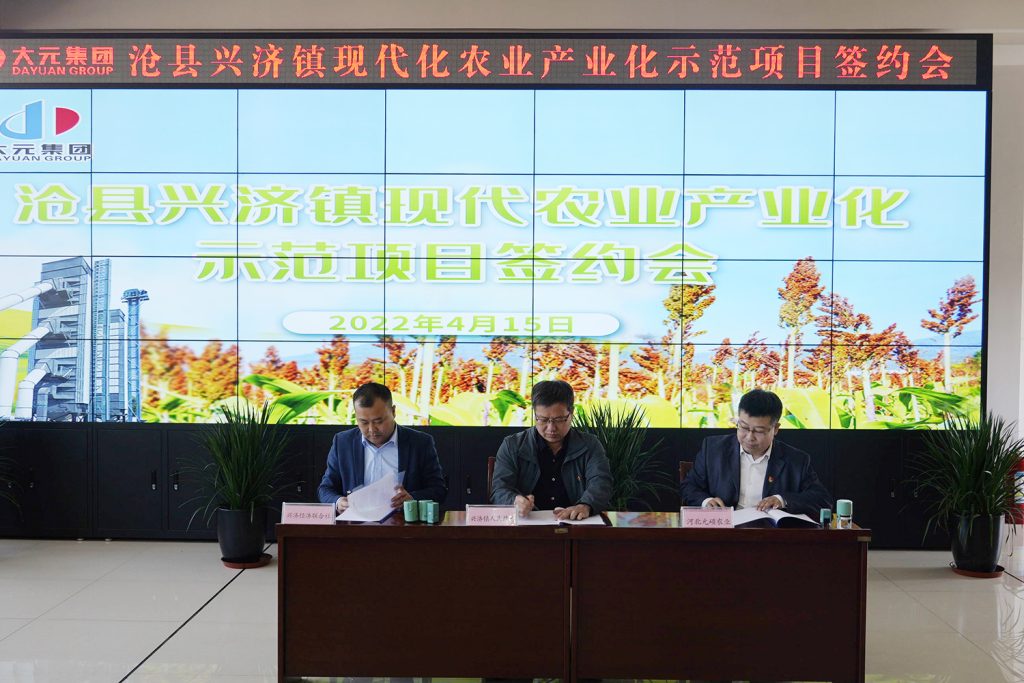 4月15日上午,滄縣興濟(jì)鎮(zhèn)現(xiàn)代農(nóng)業(yè)產(chǎn)業(yè)化示范項(xiàng)目簽約會(huì)在大元集團(tuán)總部成功舉行。滄縣組織部副部長李金峰、滄縣財(cái)政局副局長孫國強(qiáng)、滄縣農(nóng)業(yè)農(nóng)村局農(nóng)經(jīng)中心主任李勇、興濟(jì)鎮(zhèn)黨委書記白金祥、鎮(zhèn)長龐東峰、興濟(jì)鎮(zhèn)股份經(jīng)濟(jì)聯(lián)合社理事長王振元等領(lǐng)導(dǎo),大元集團(tuán)黨委書記、董事局主席李建國、副總裁趙建峰等參加會(huì)議。