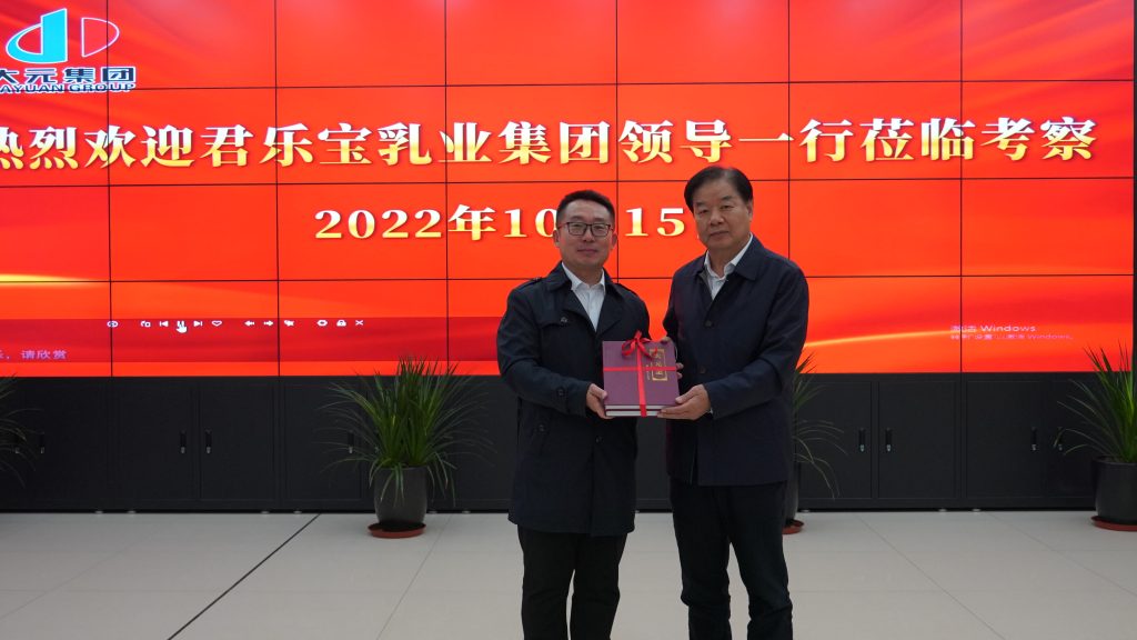 會上,魏總監介紹君樂寶乳業發展史,表示,很榮幸來到大元集團進行參觀,因為多年良好的合作關系倍感親切,感受到大元集團濃厚的黨建文化深感震撼,并對大元集團建設牧場項目期間面對諸多不利因素,敢于應戰、不提困難的精神,以及嚴把工程質量,超額完成業主節點計劃的行動致以誠摯的謝意。表示,君樂寶集團與大元集團有著高度相似的企業文化和社會責任感,期待與大元集團的長期戰略合作。
